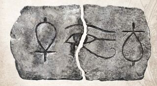 Protective symbol that was in place on the Red Pyramid and destroyed by Roger Carlyle. Left half recovered by Jack Brady.